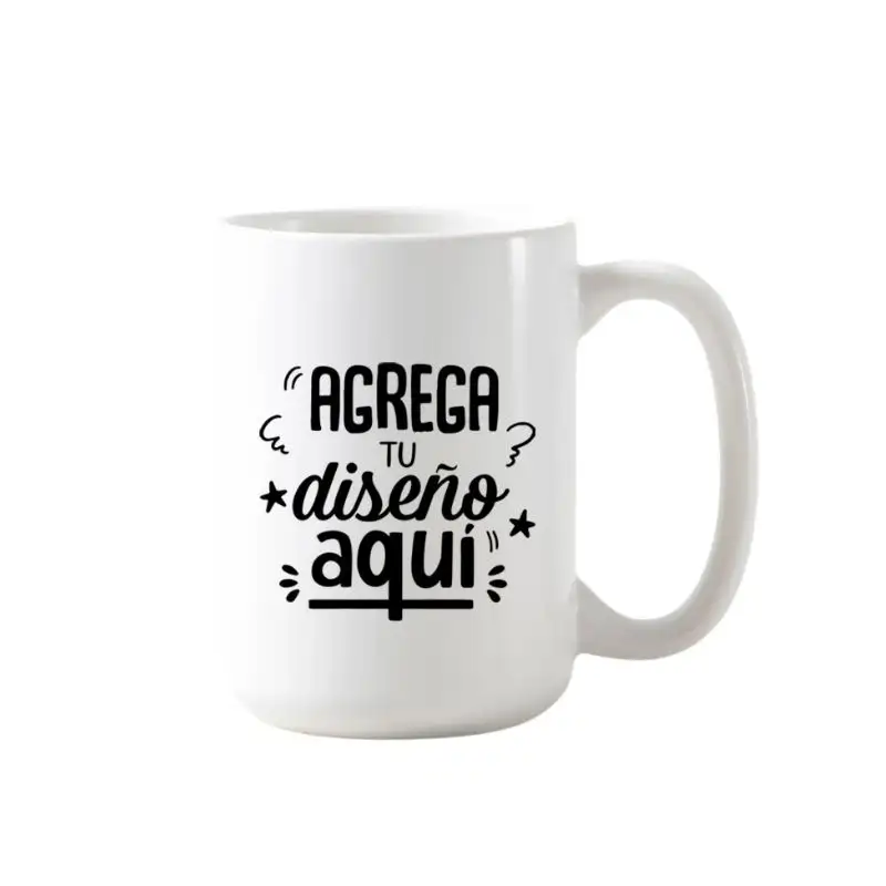 Taza de cerámica blanca de 15 onzas, perfecta para personalizar con diseños, logos o fotografías mediante sublimación a todo color. Su acabado brillante garantiza una excelente calidad de impresión y durabilidad.